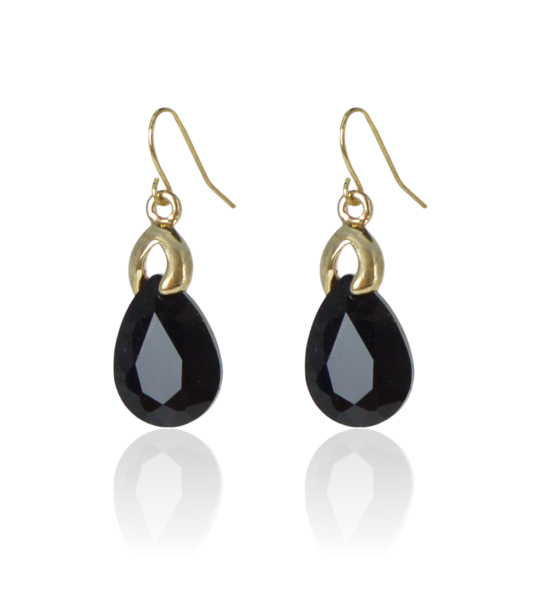 Subtelne, lekko wiszące kolczyki na biglu, ozdobione czarną, kryształową łezką osadzoną w złotej oprawie. Eleganckie i wyrafinowane, z ponadczasową nutą, doskonale podkreślą wieczorowe stylizacje. Idealny wybór na specjalne okazje, romantyczne wyjścia czy eleganckie przyjęcia. Świetne również jako prezent dla miłośniczki klasycznej biżuterii o uniwersalnym charakterze.