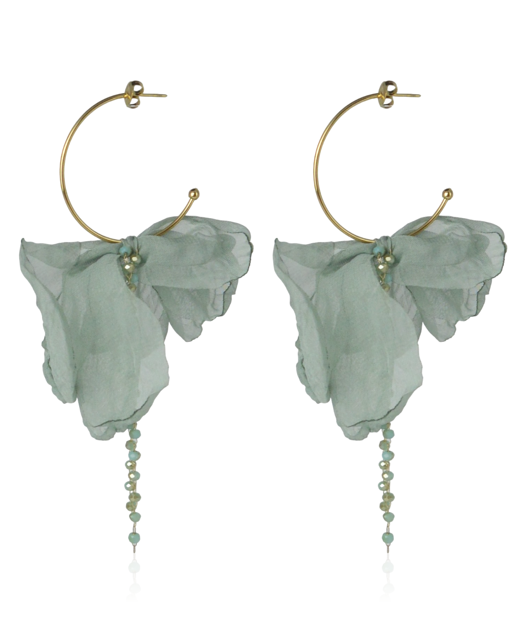 Kolczyki materiałowe eukaliptus na stalowym kółeczku