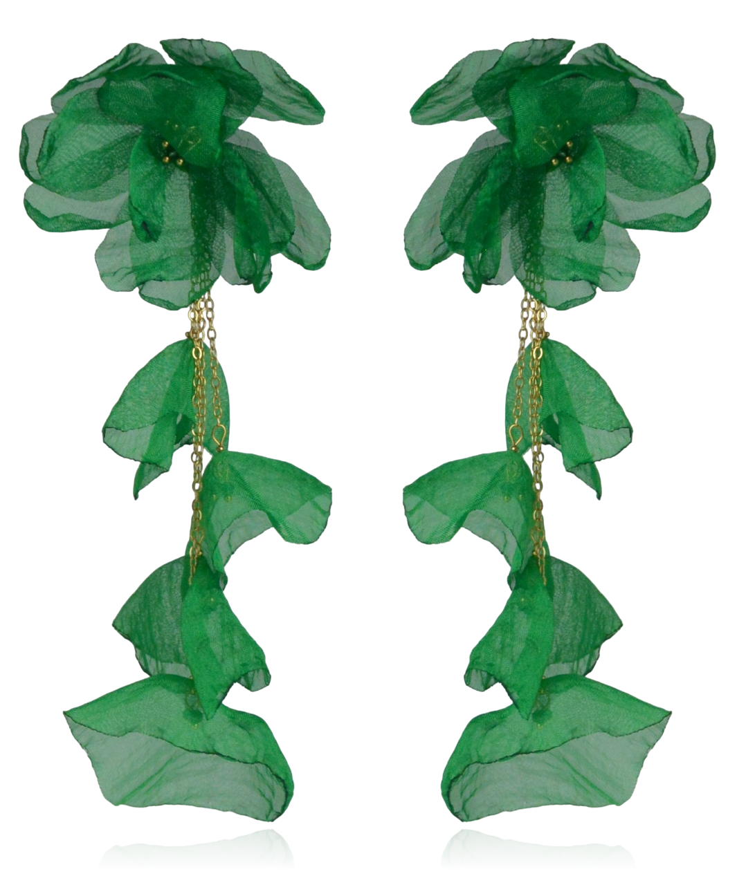 Kolczyki materiałowe kwiaty z łańcuszkami zielone
