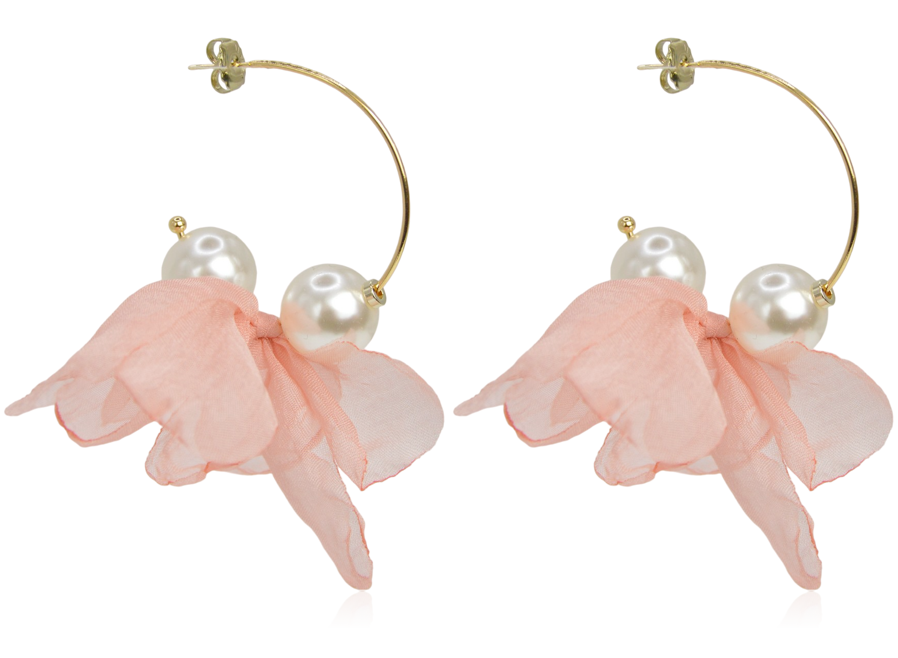 Kolczyki materiałowe na kółku z perełkami łosoś
