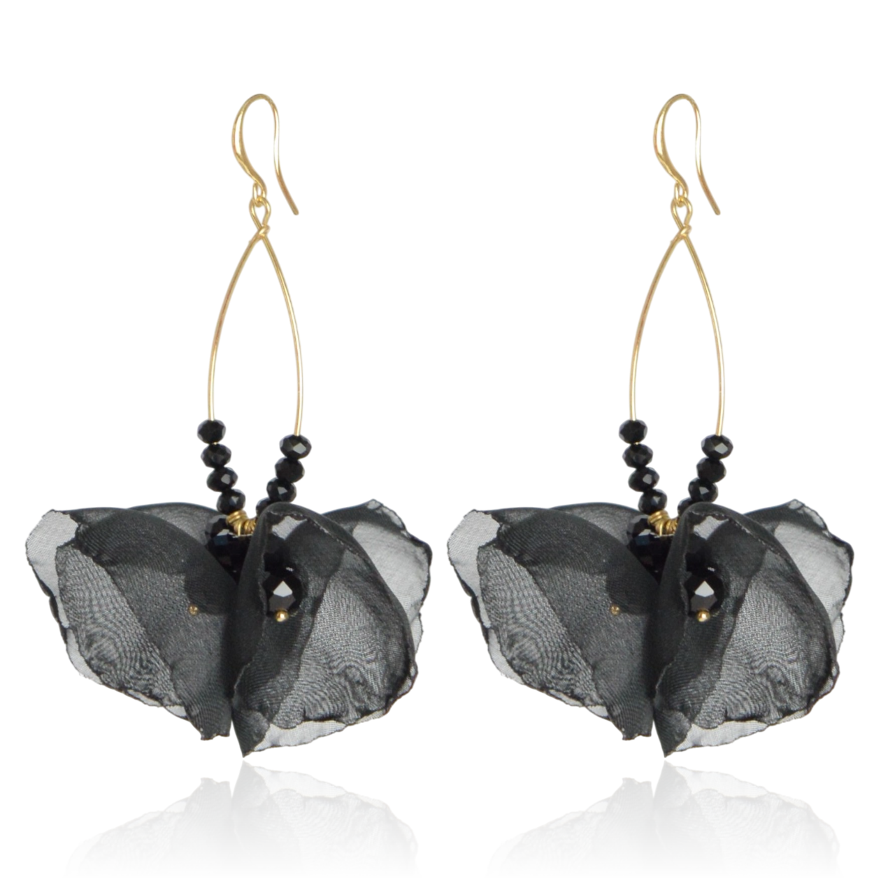 Kolczyki materiałowe na złotej łezce czarne