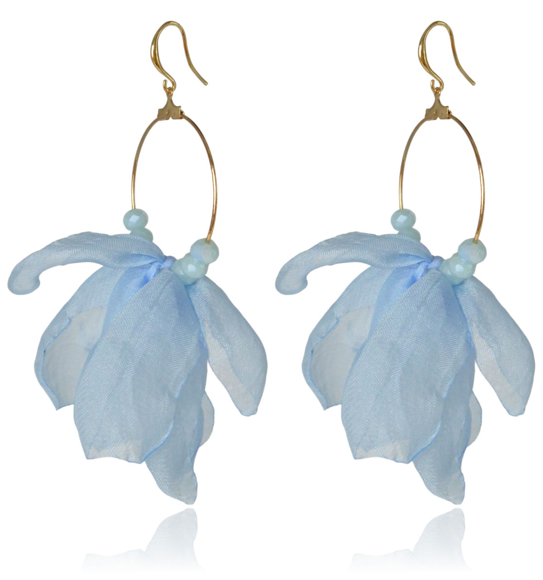 Niezwykle lekkie kolczyki wiszące, łączące subtelność zwiewnej tkaniny z delikatnym blaskiem kryształków. Romantyczny dodatek, który doda Twojej stylizacji objętości bez obciążania ucha.