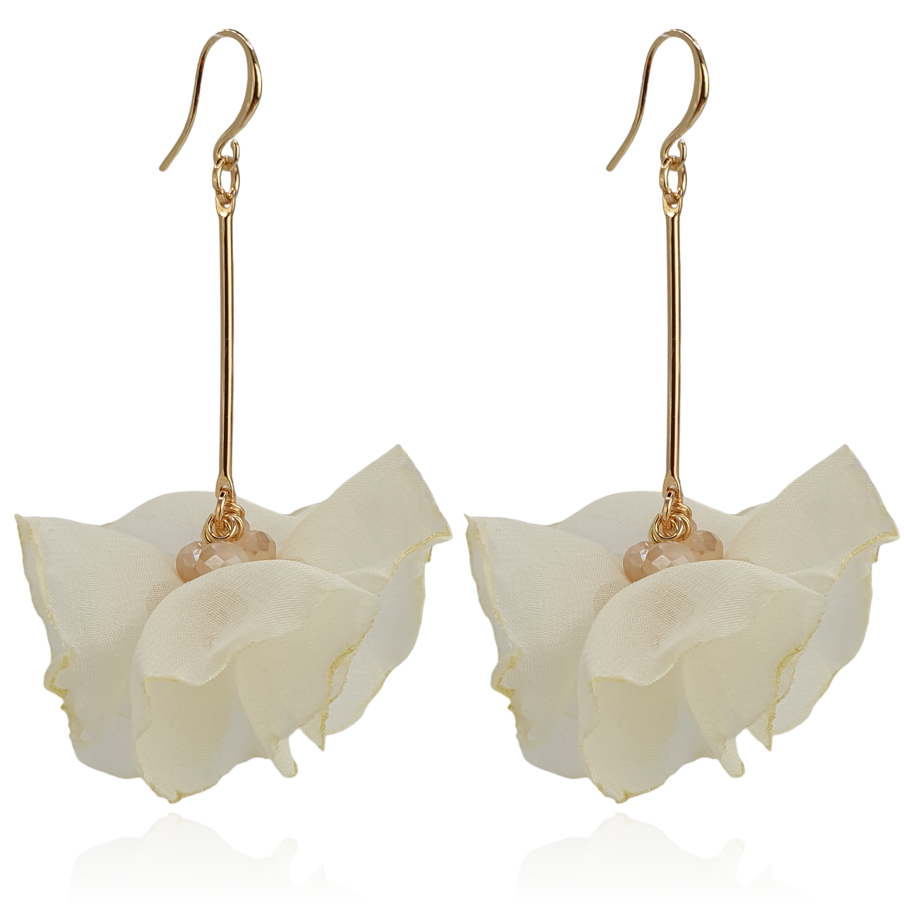 Kolczyki materiałowe na złotym patyczku ecru