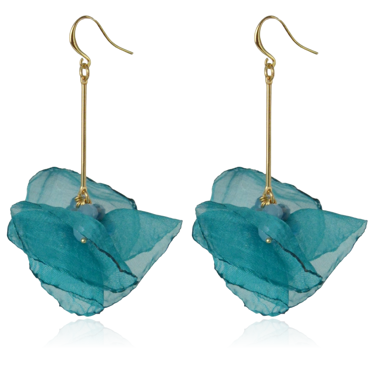 Kolczyki materiałowe na złotym patyczku turkusowe