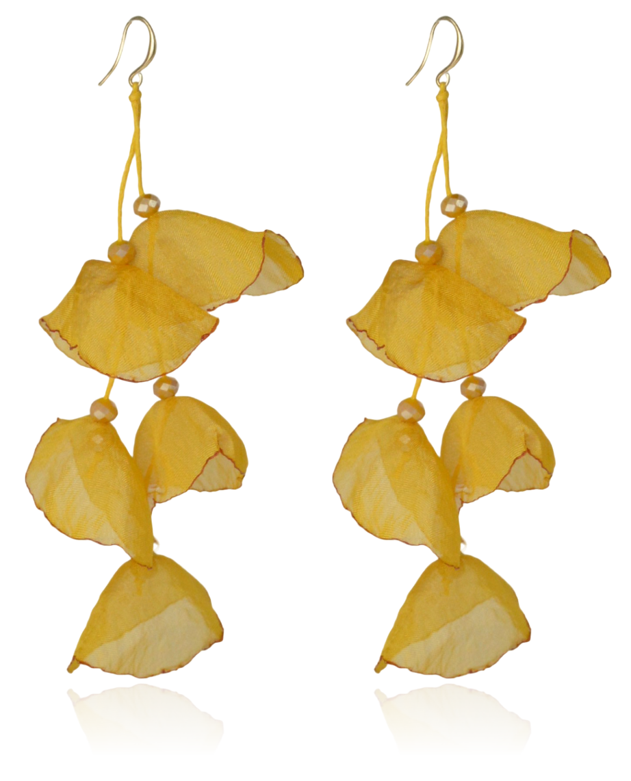 Kolczyki materiałowe z kryształkami długie musztarda