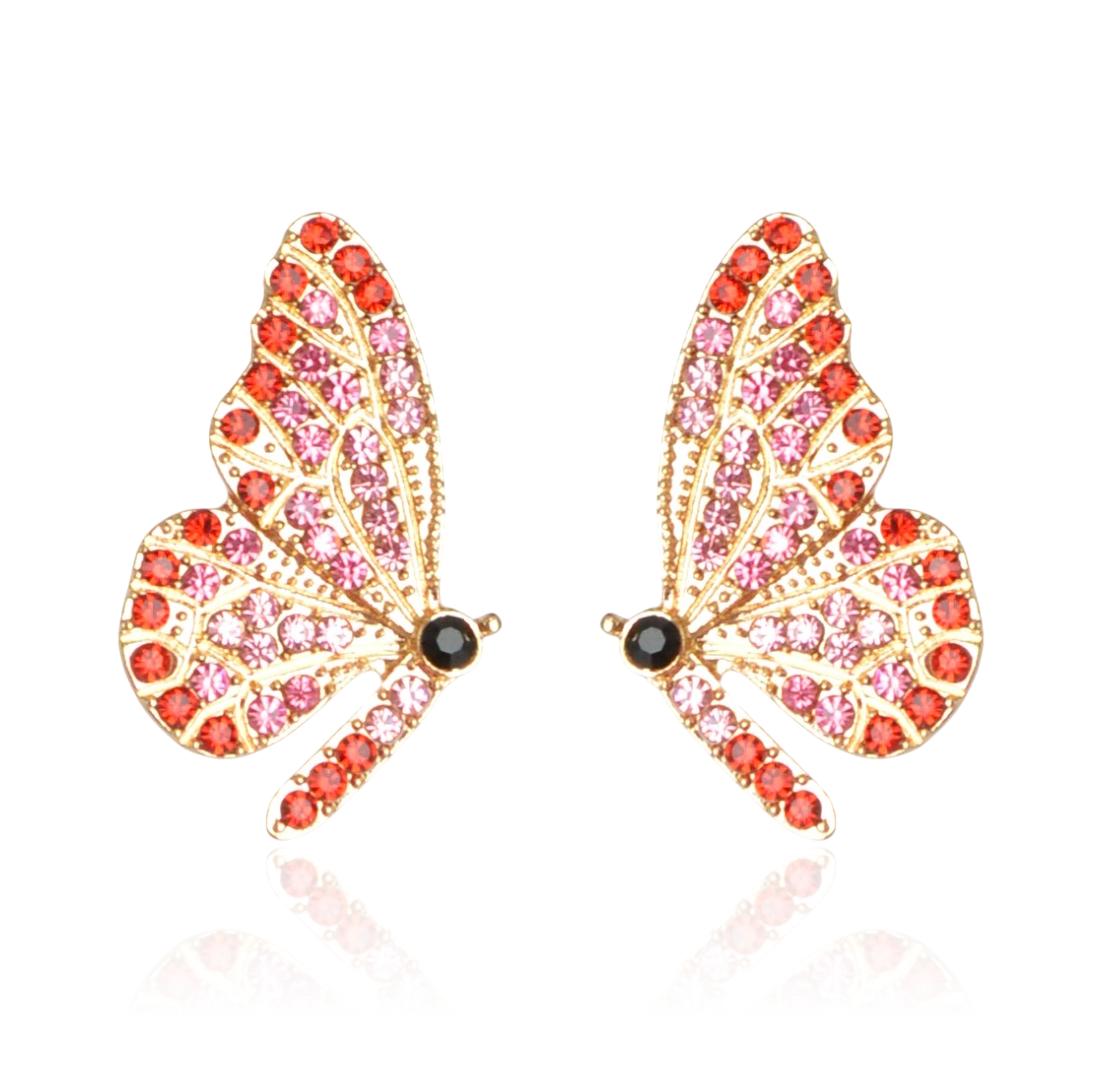 Kolczyki motyle na sztyfcie cyrkonie róż i czerwień