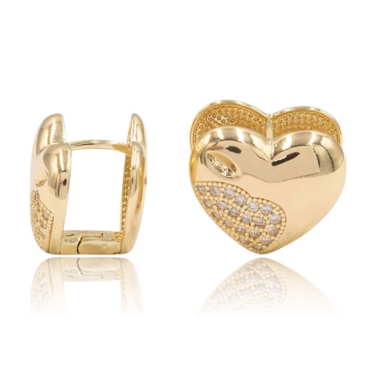 Kolczyki serca z cyrkoniami z miedzi pozłacanej 14k