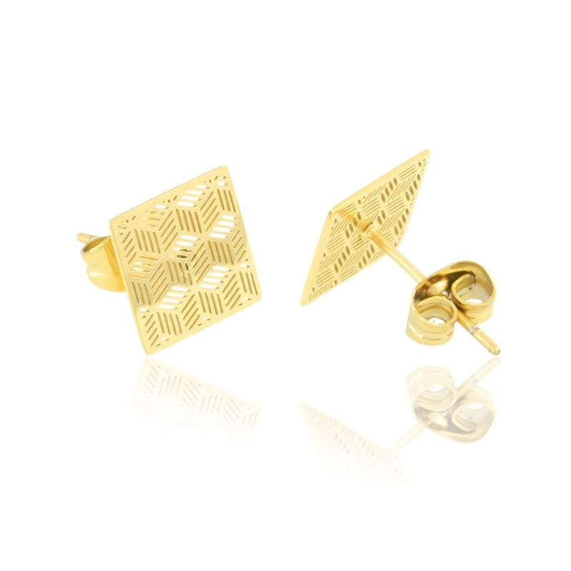 Kolczyki stalowe wkrętki kwadraciki ażur złote