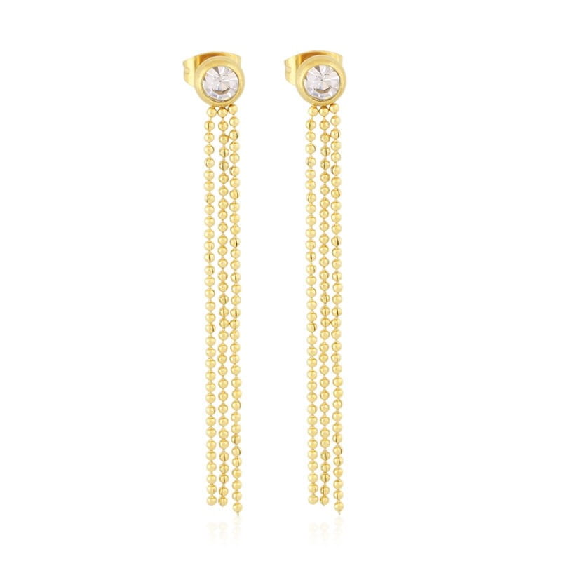 Kolczyki wiszące nitki kuleczkowe z cyrkoniami