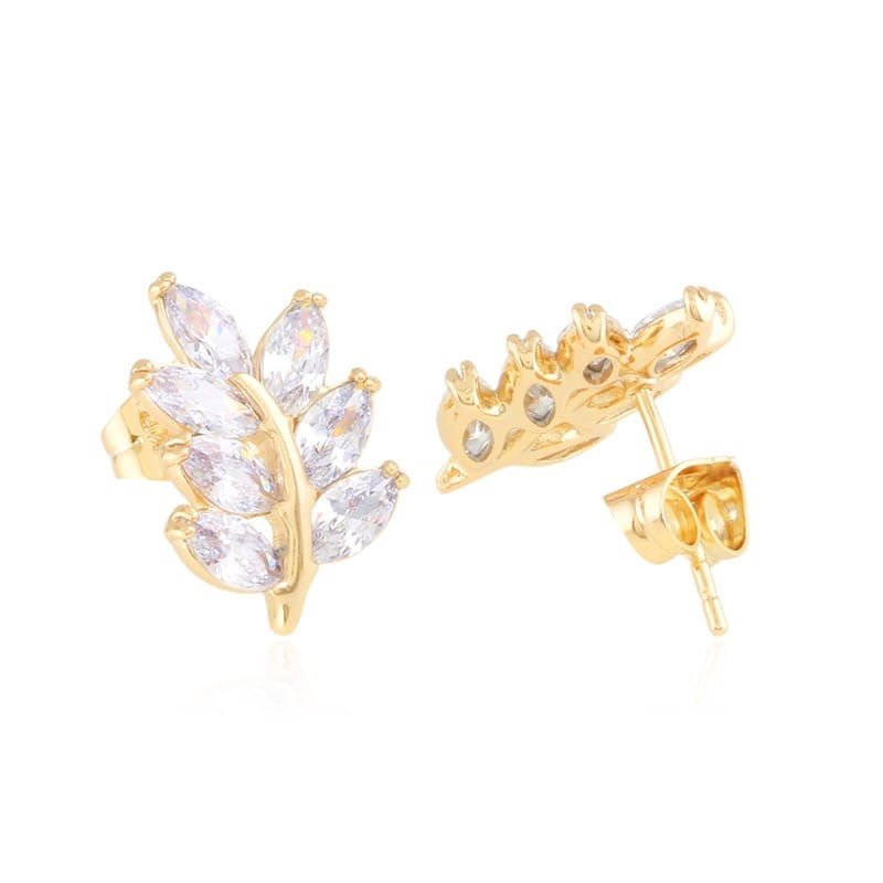Kolczyki wkrętki miedź pozłacana listki cyrkonie