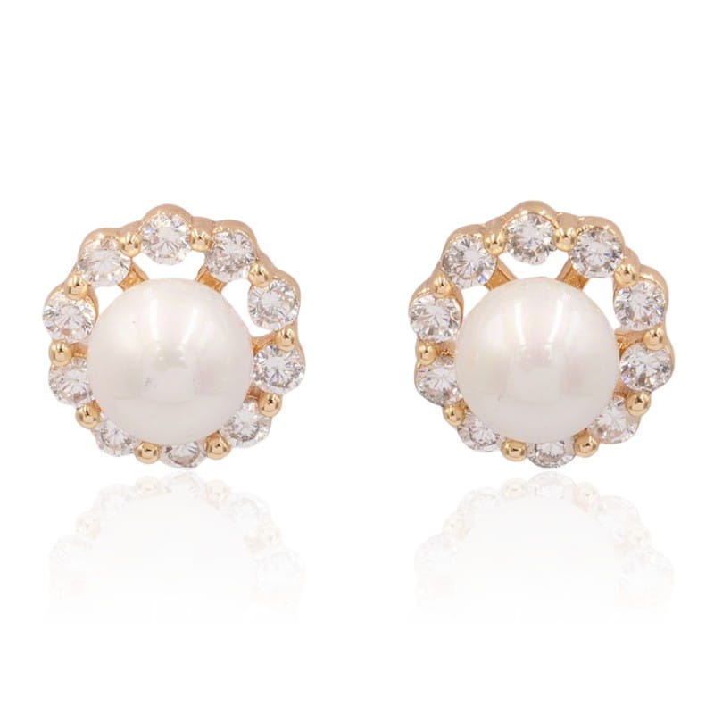 Materiał: miedź pozłacana 18k, antyalergiczny, cyrkonie szklane, imitacja pereł