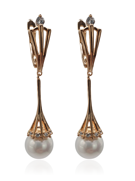 Materiał: miedź pozłacana, cyrkonie szklane, imitacja pereł