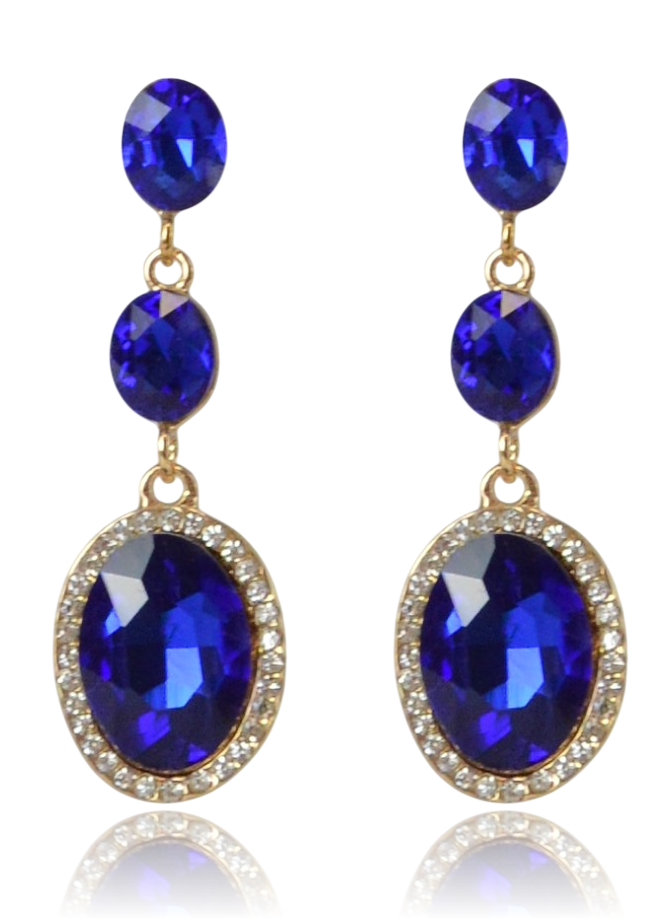 Te kolczyki to połączenie klasycznej formy z odważną kolorystyką. Konstrukcja składa się z trzech pionowo ułożonych kryształów w kolorze głębokiego szafiru, które subtelnie zwiększają swój rozmiar ku dołowi.