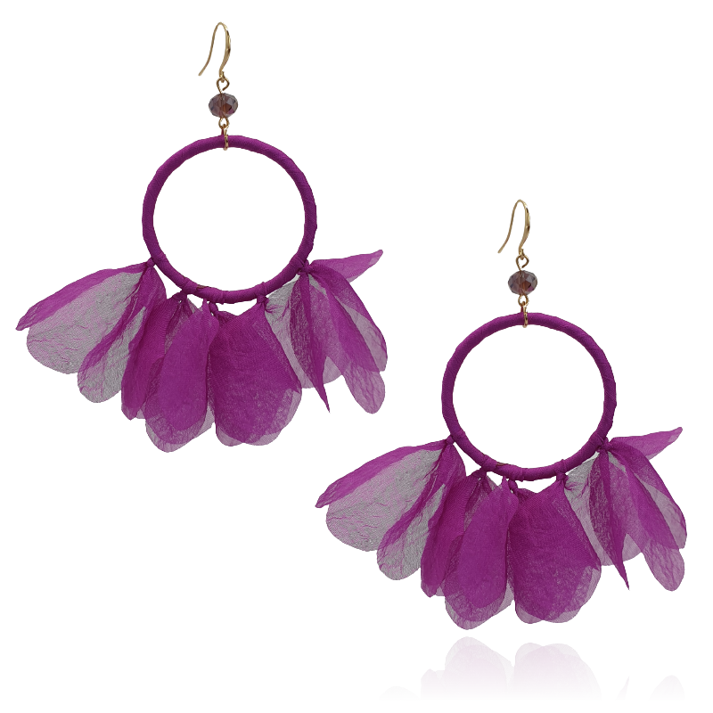 Kolczyki z tkaniny na kole różowy fiolet