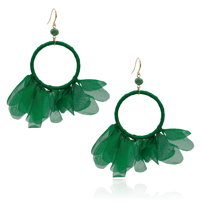 Kolczyki z tkaniny na kole zielone