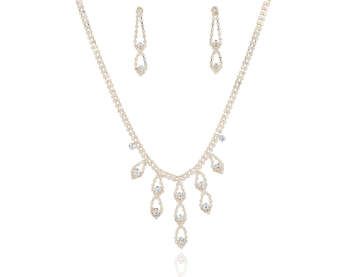 Komplet 2-częściowy z cyrkonii złoty wiszące łezki