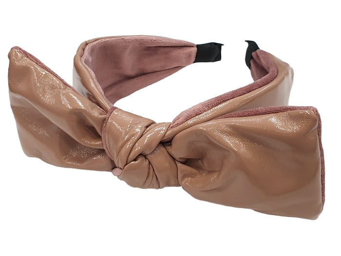 Lakierowana opaska do włosów z kokardą nude