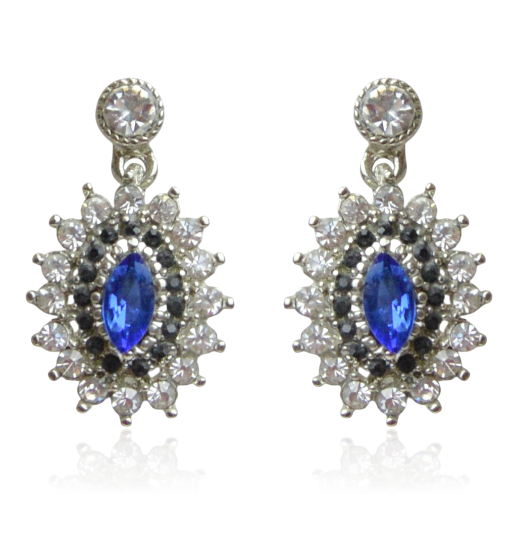 Kolor: srebrny metal, szafirowe i białe cyrkonie