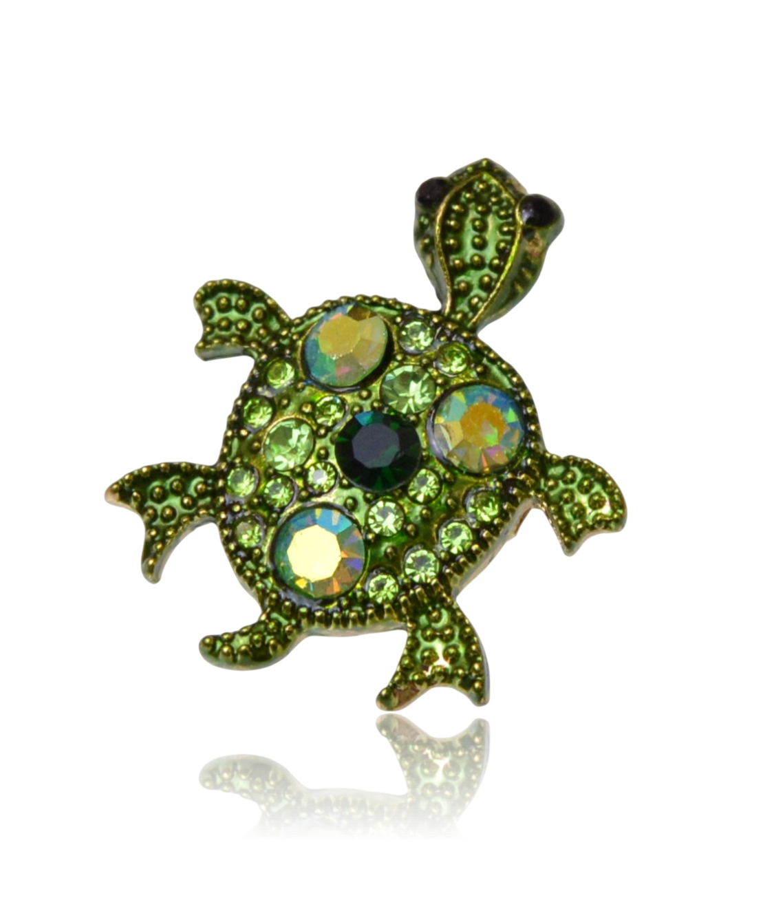 Mini broszka żółwik z cyrkoniami zielony