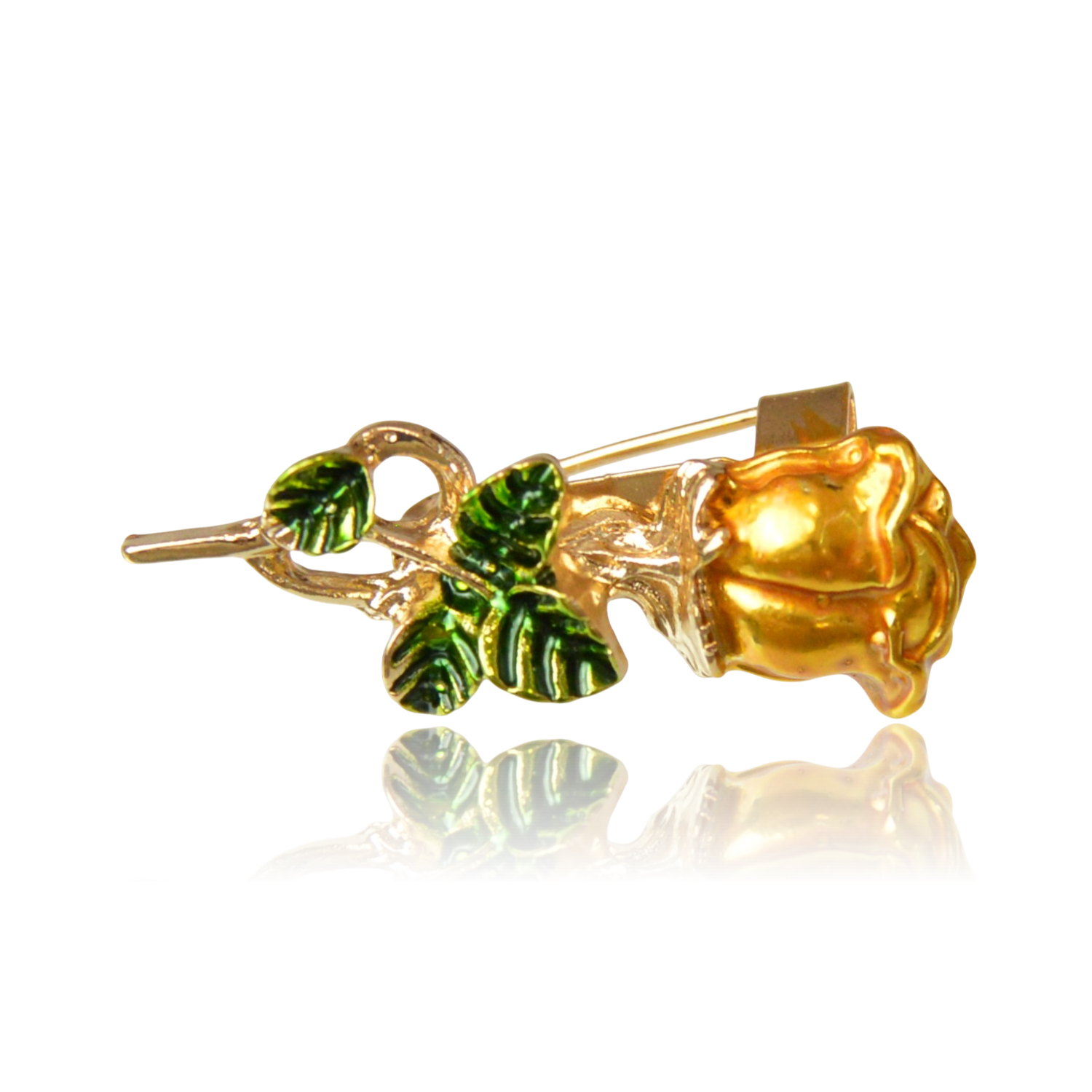 Subtelna broszka z emaliowaną różą to drobny, ale wyjątkowo kobiecy dodatek. Połączenie złotych detali z emalią tworzy romantyczny efekt w stylu vintage. Doskonała do przypięcia przy kołnierzyku, na apaszce lub kapeluszu – doda elegancji i uroku w każdym wydaniu.