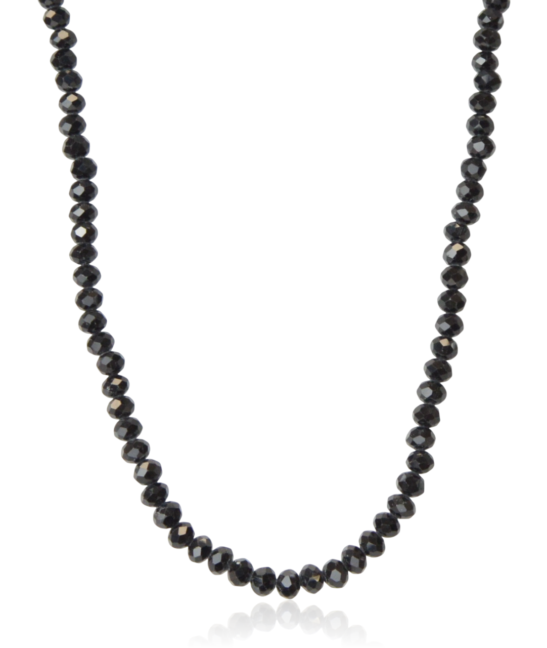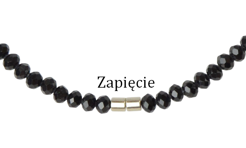 Naszyjnik I-rzędowy z fasetowanych kryształków w głębokim czarnym kolorze, który stylowo otula szyję. Magnetyczne zapięcie zapewnia wygodę, a minimalistyczny design w połączeniu z subtelnym połyskiem kryształków nadaje biżuterii klasy i wyrafinowania. Idealny wybór na wieczorne wyjścia oraz wyjątkowe okazje, które wymagają elegancji z nutą tajemniczości.
