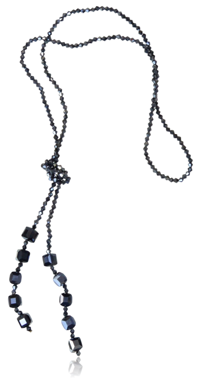 Naszyjnik Lariat z kryształków fasetowanych granat/grafit