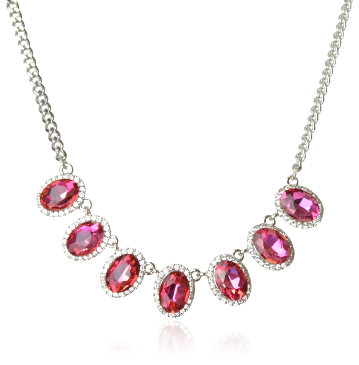 Elegancki naszyjnik – kolia na klasycznym srebrnym łańcuszku, zdobiona owalnymi markizami z cyrkonii w kolorze srebrno-malinowym. Połączenie subtelnego blasku srebra z intensywnym odcieniem malinowej cyrkonii tworzy wyjątkową biżuterię, która doda szyku każdej stylizacji. Idealny wybór na eleganckie wyjścia, wesela czy inne, wyjątkowe okazje.