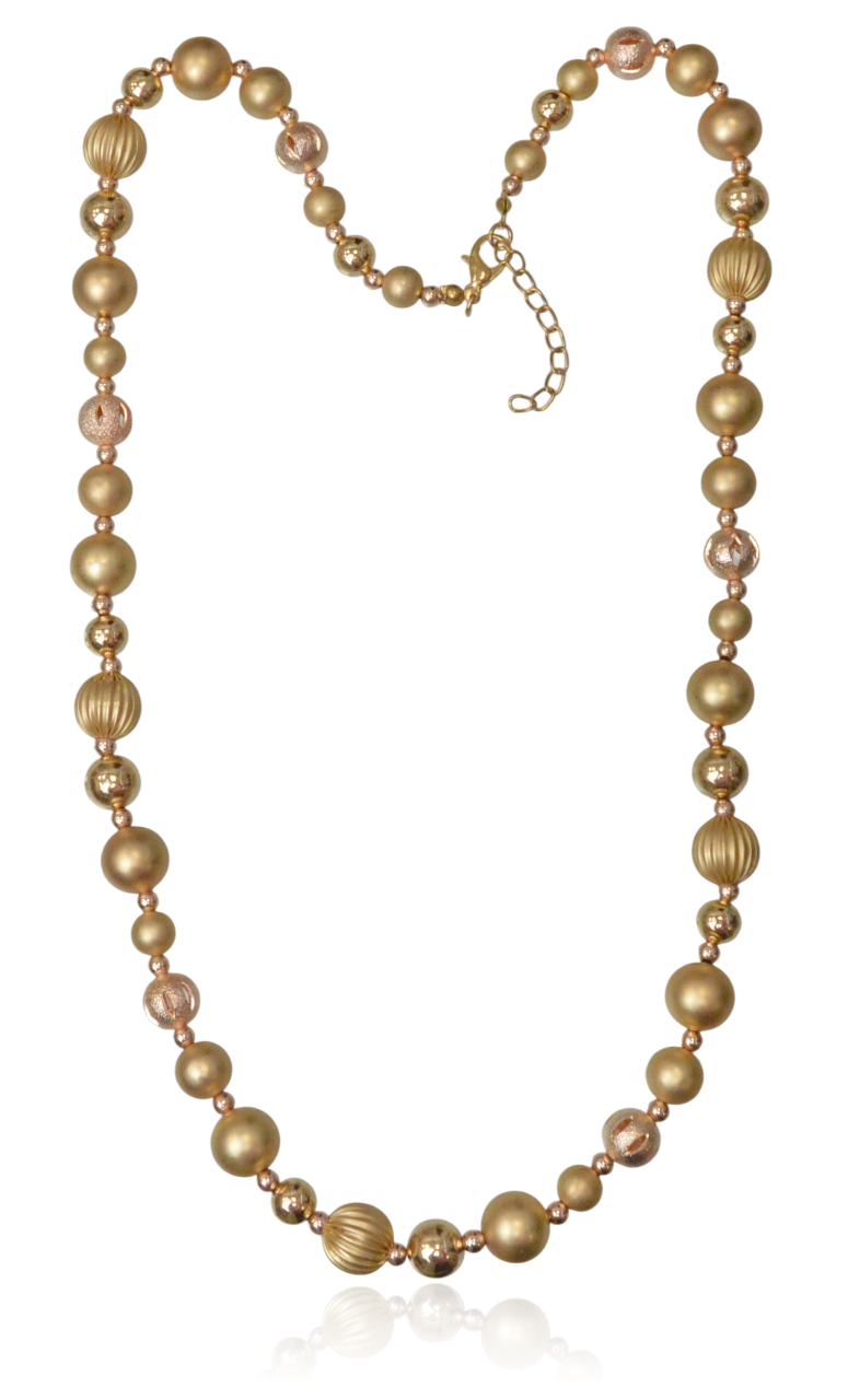 Naszyjnik korale kulki złoto + różowe złoto 64 cm