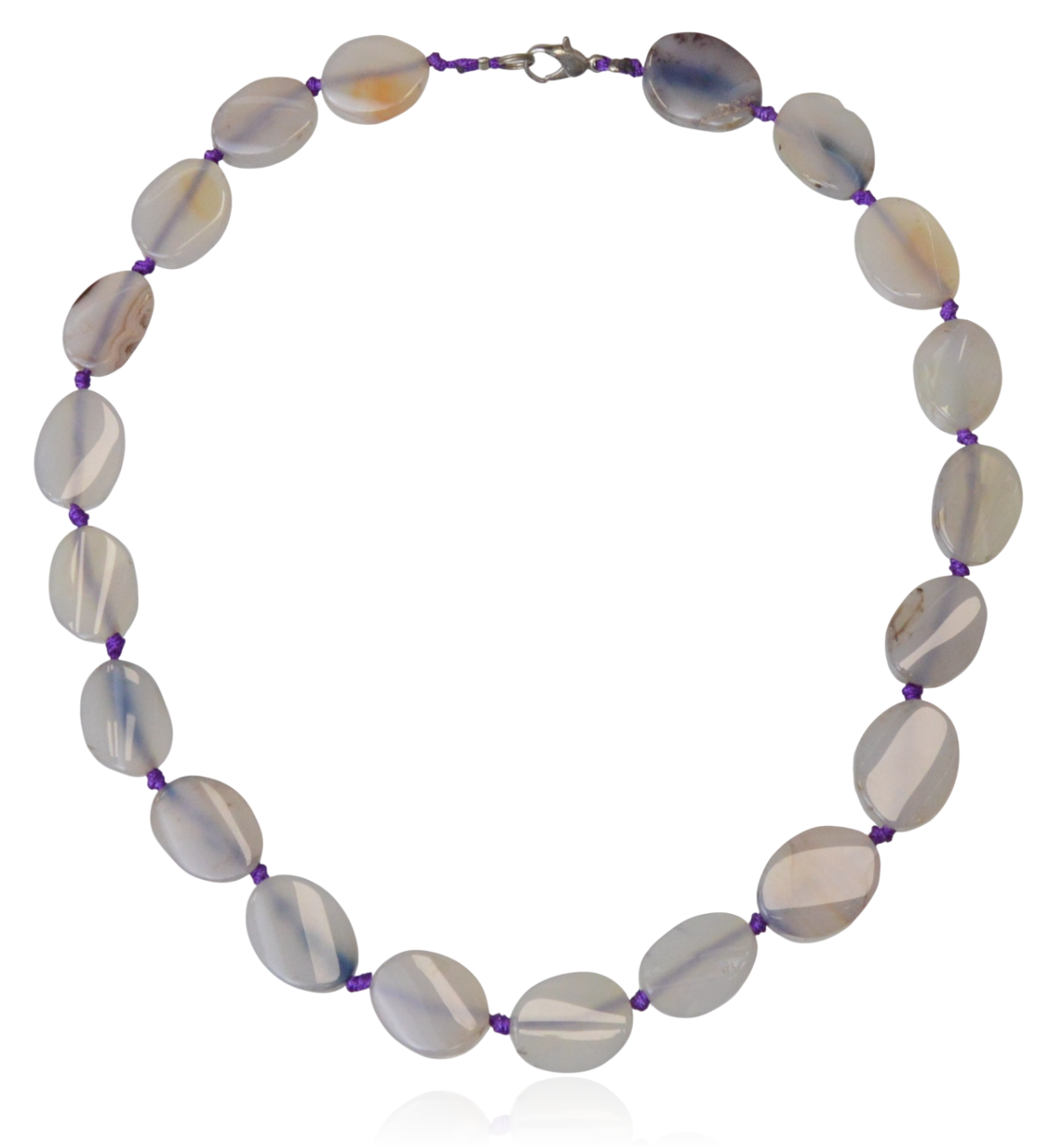 Naszyjnik korale pastylki owalne agat szaro-fioletowy