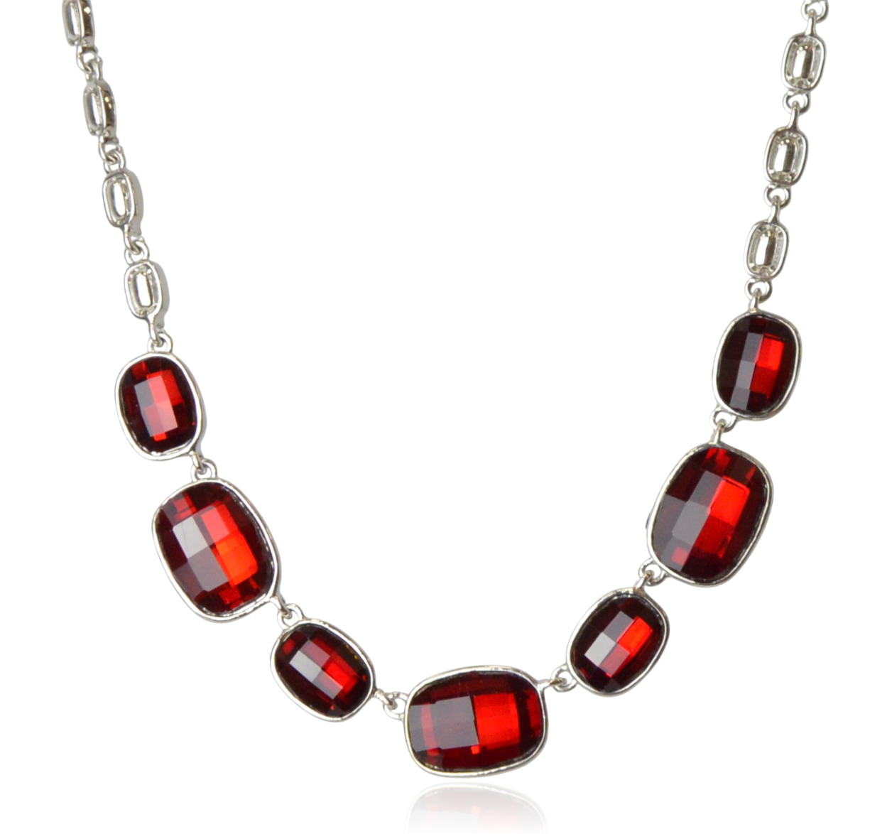 Naszyjnik w formie srebrnej kolii z dużymi, prostokątnymi bordowymi kryształami (cyrkoniami), które przyciągają wzrok swoją głęboką barwą i wyjątkowym blaskiem. Ta elegancka biżuteria to doskonały wybór na wieczorne wyjścia, galę czy inne wyjątkowe okazje, nadając stylizacji wyrazisty, luksusowy charakter.