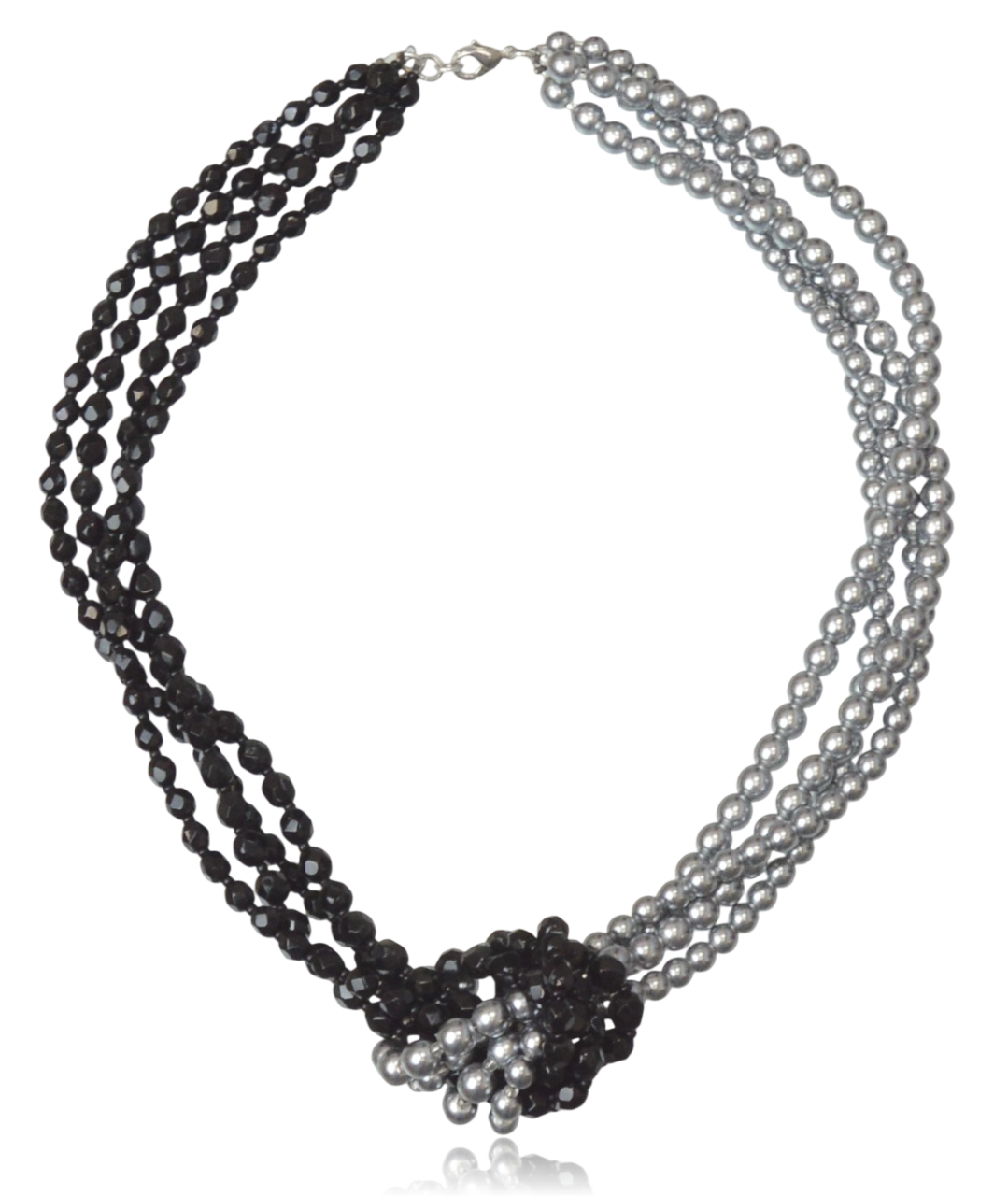 Naszyjnik supełek z pereł czeskich czarno-szary