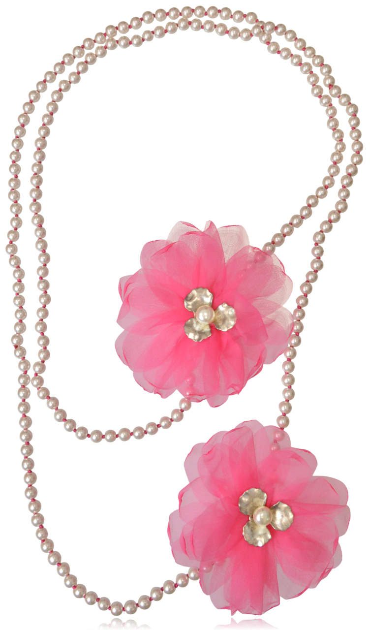 Naszyjnik z Pereł 200 cm z Kwiatami Tkaniny - Różowy