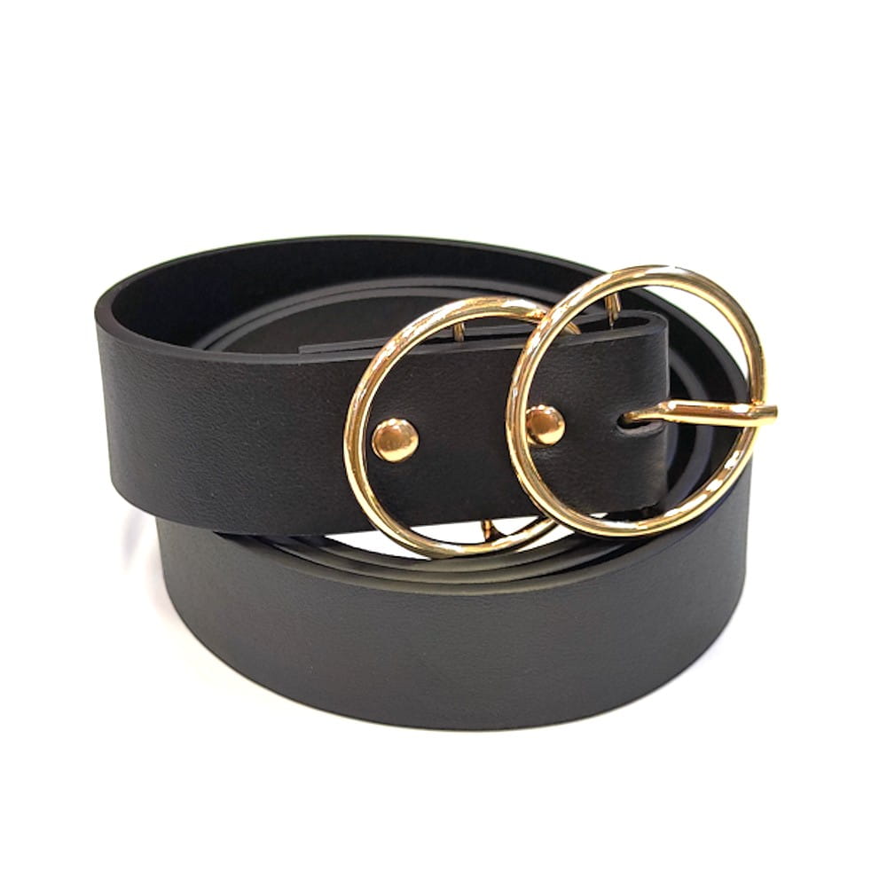 Pasek damski z podwójną okrągłą klamrą