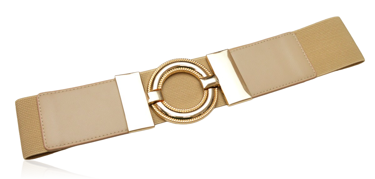 Pasek na gumie elastyczny beżowy złota okrągła klamra