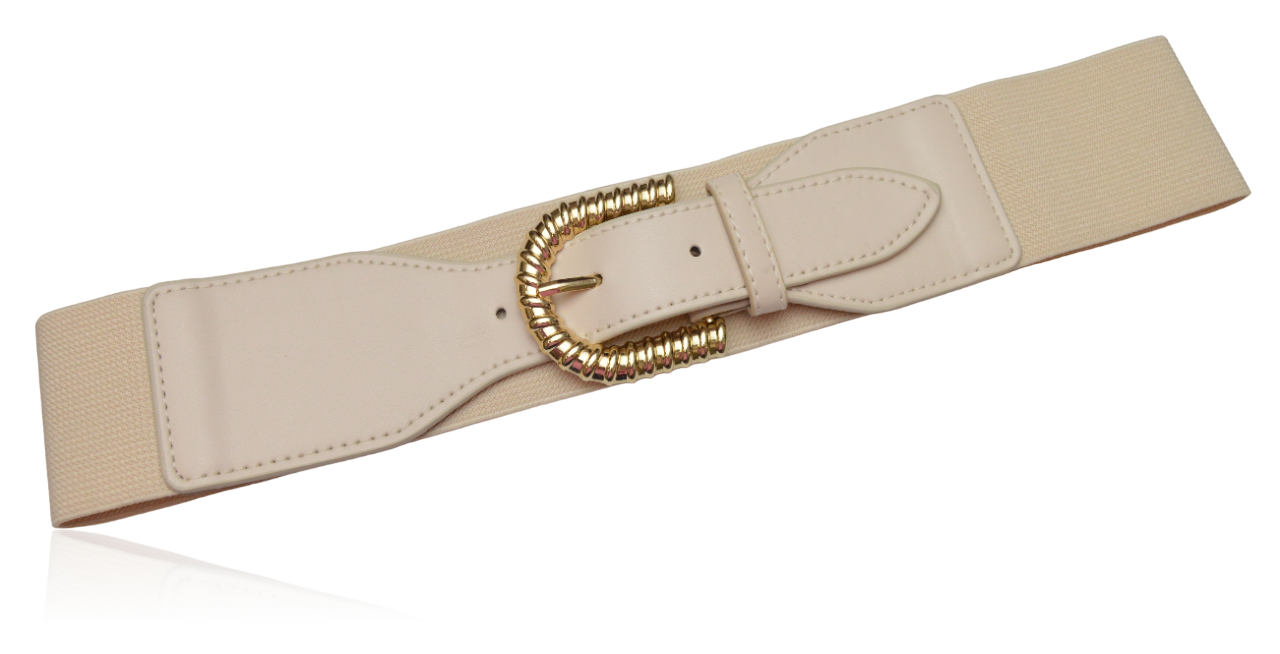 Pasek na gumie elastyczny jasnobeżowy złota klamra