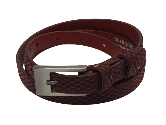Pasek skórzany cienki nakrapiany bordo 85 cm