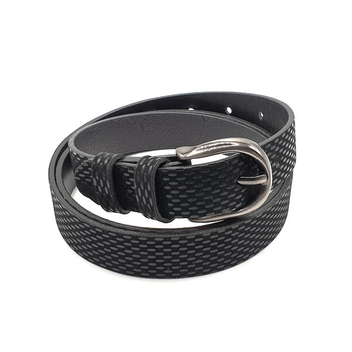 Pasek skórzany średni czarny z wzorkiem 100 cm