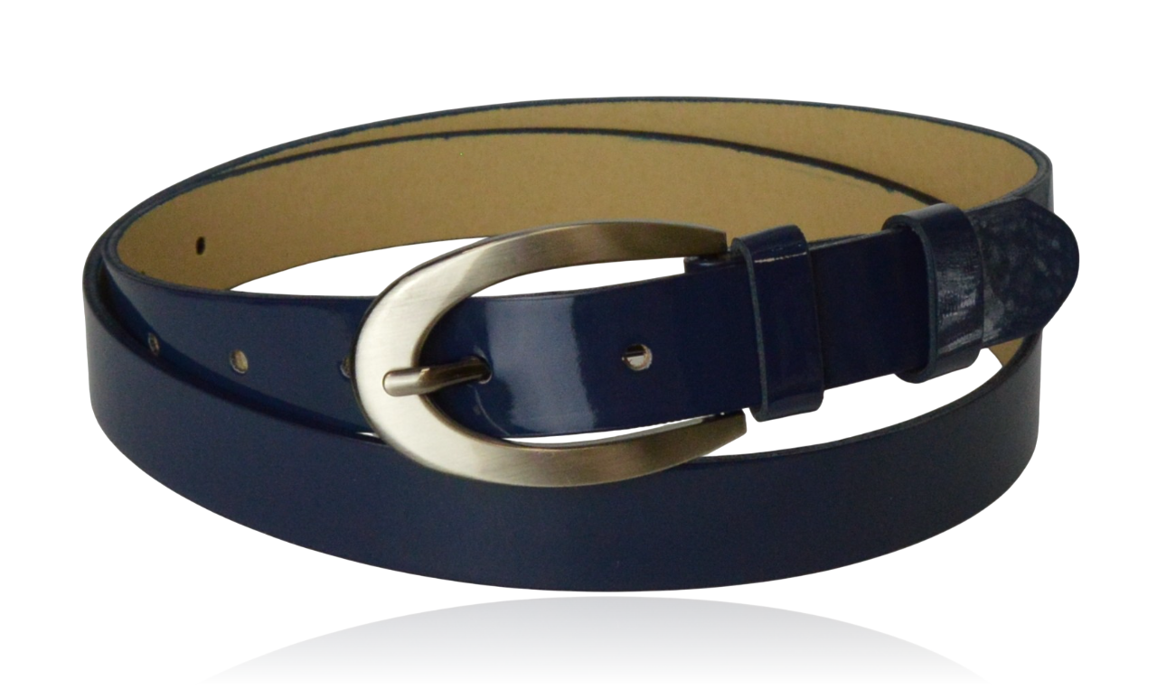 Pasek skórzany średni granatowy lakier 100 cm
