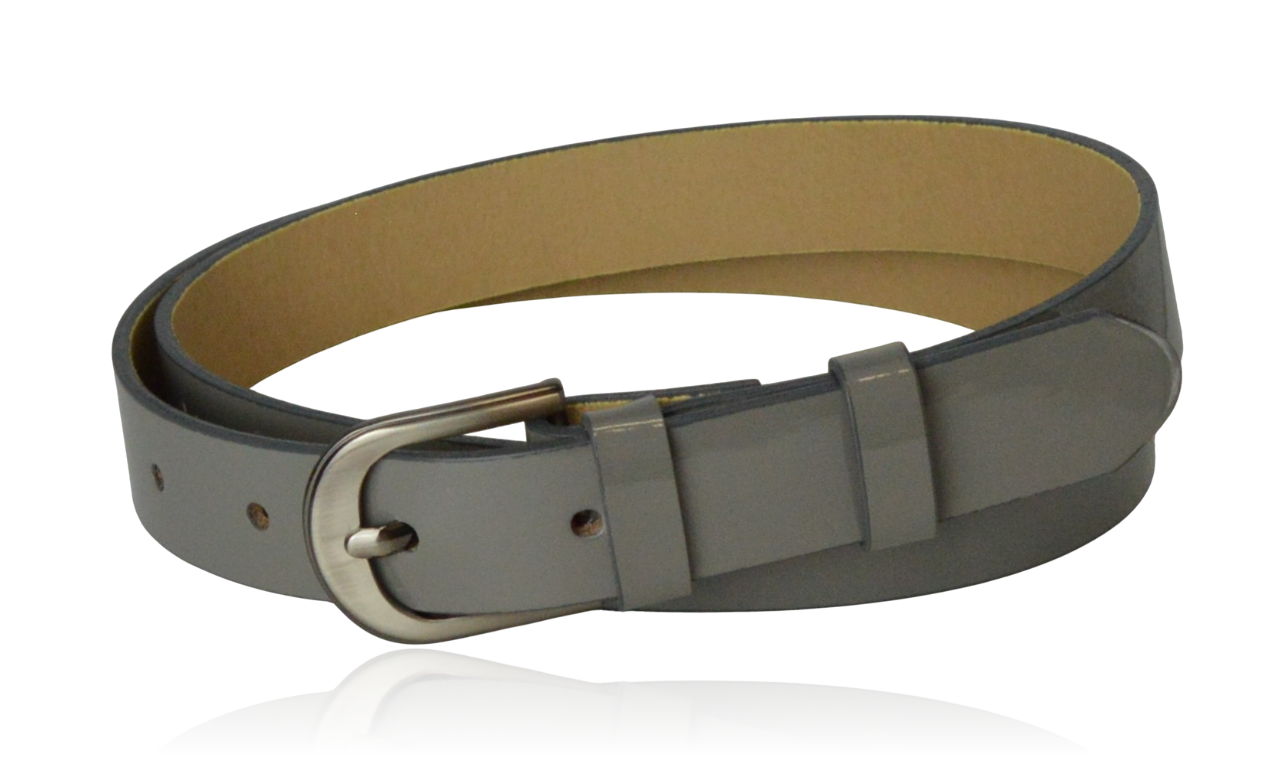 Pasek skórzany średni szary lakier 85 cm