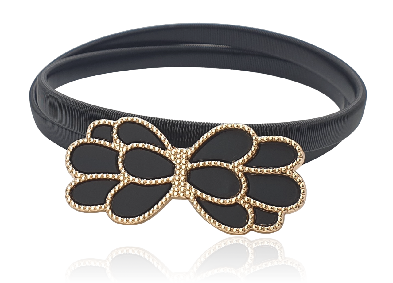 Pasek sprężynka czarna klamra kokardka