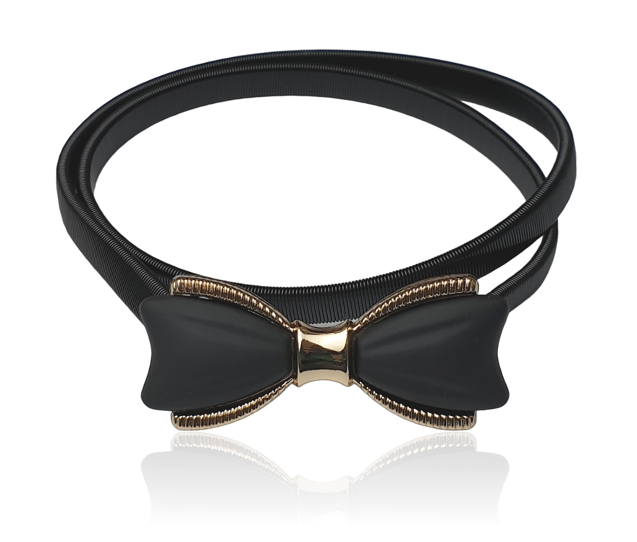 Pasek sprężynka czarno-złota klamra kokardka