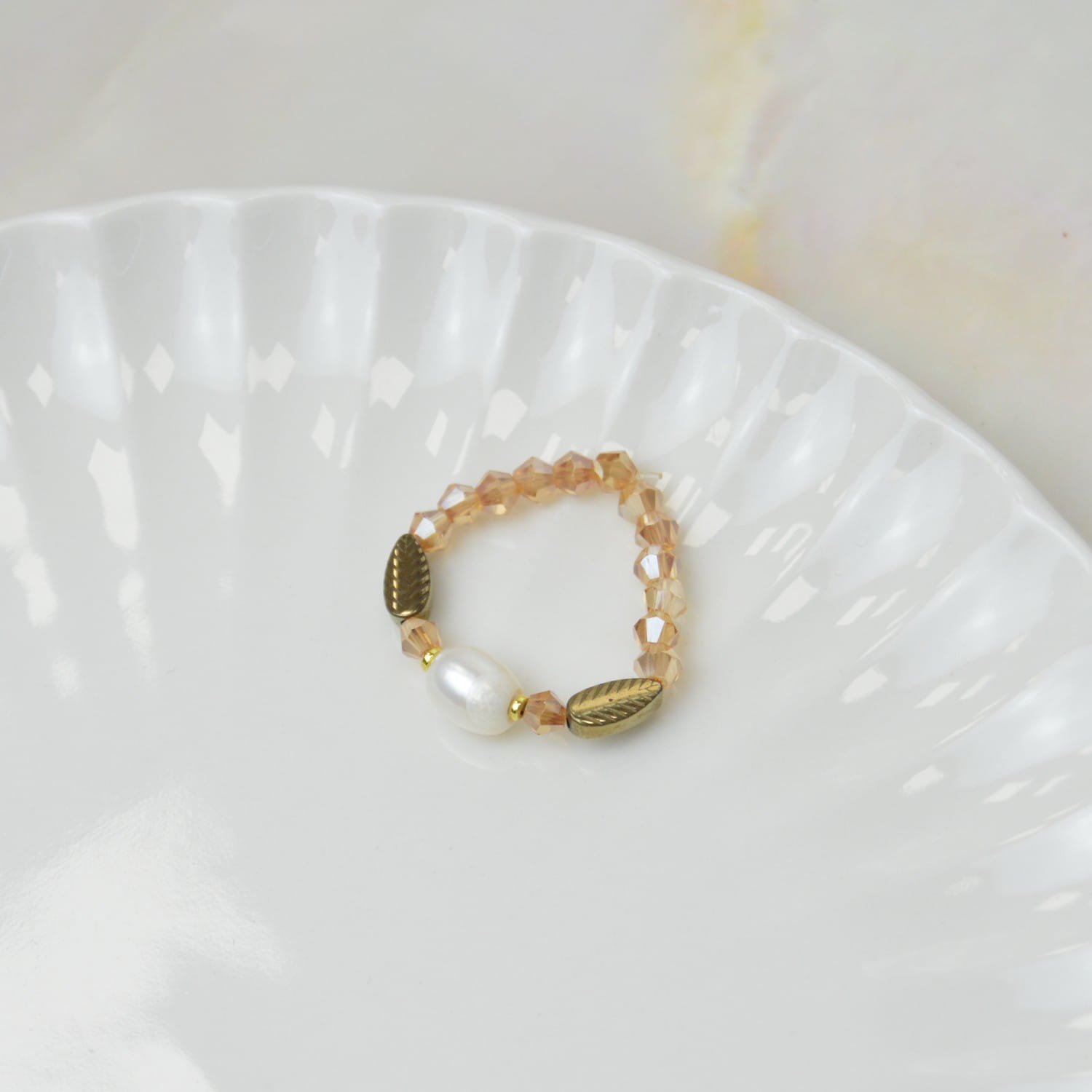 Pierścionek Elastyczny Pearl Leaf – Handmade