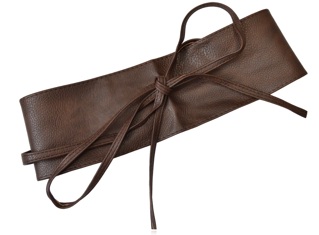 Szeroki damski pasek wiązany czekoladowy