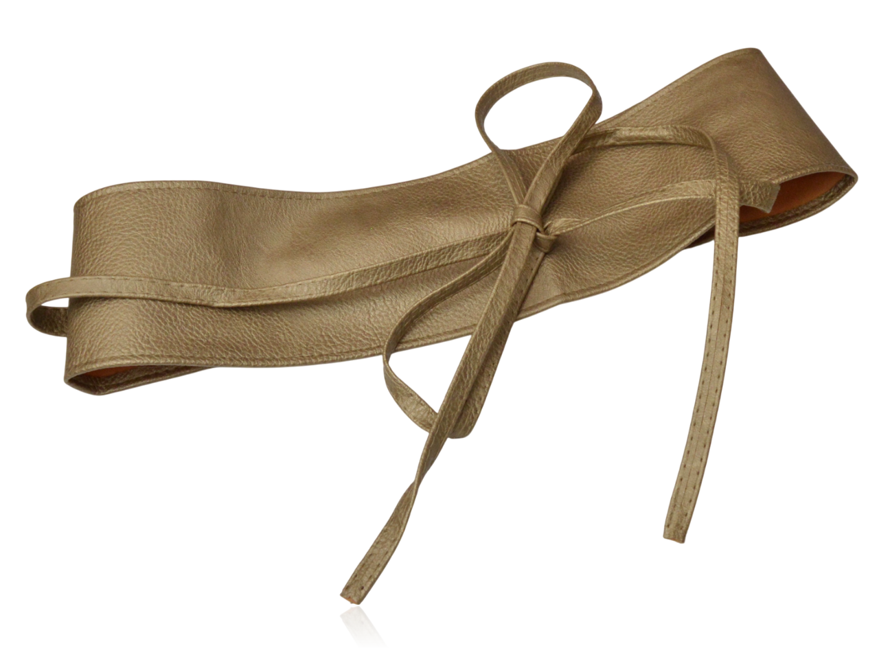 Szeroki damski pasek wiązany złoty beż